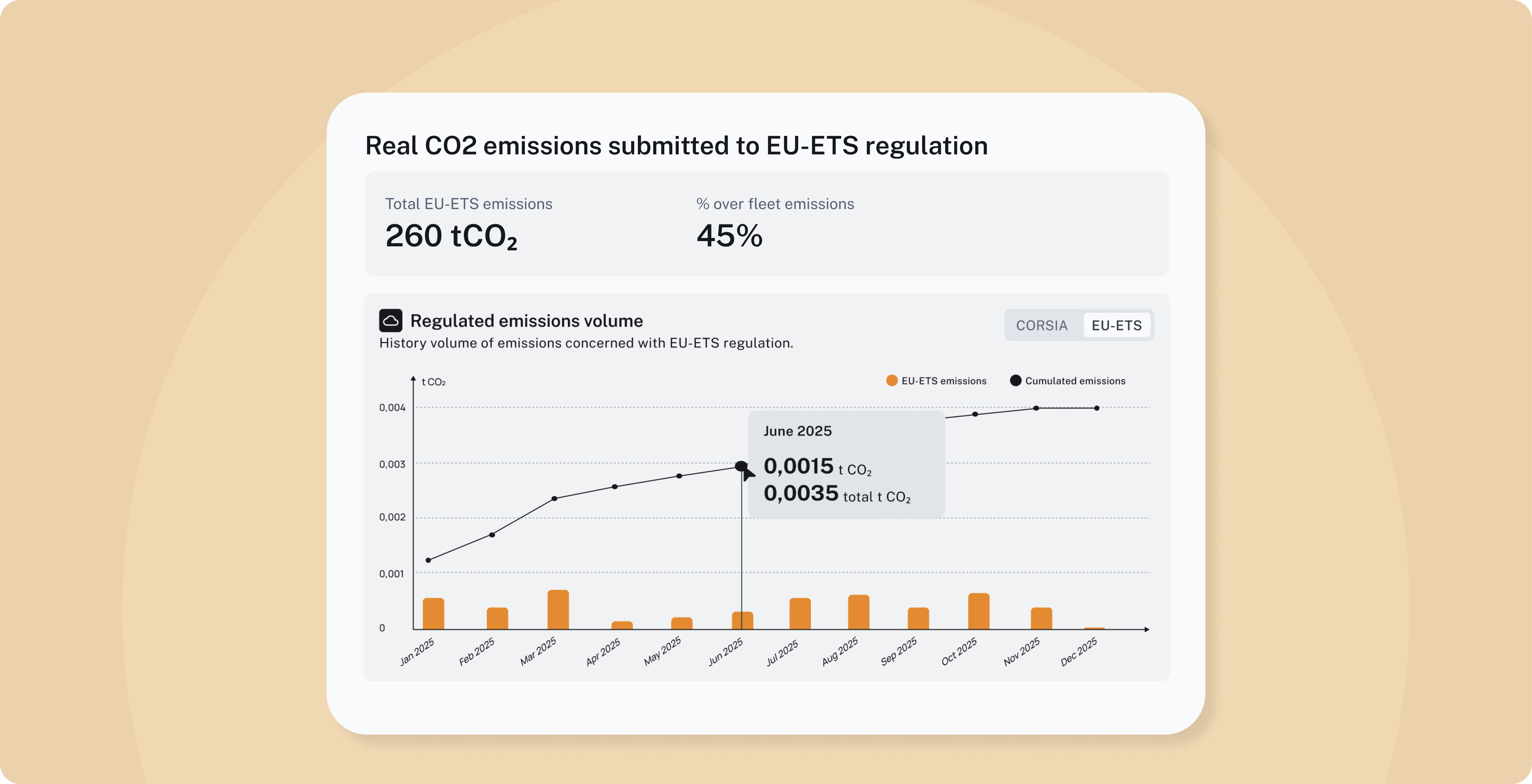 Measured emissions derived from real combustion data — fully traceable and ready for ETS/CORSIA submission.
