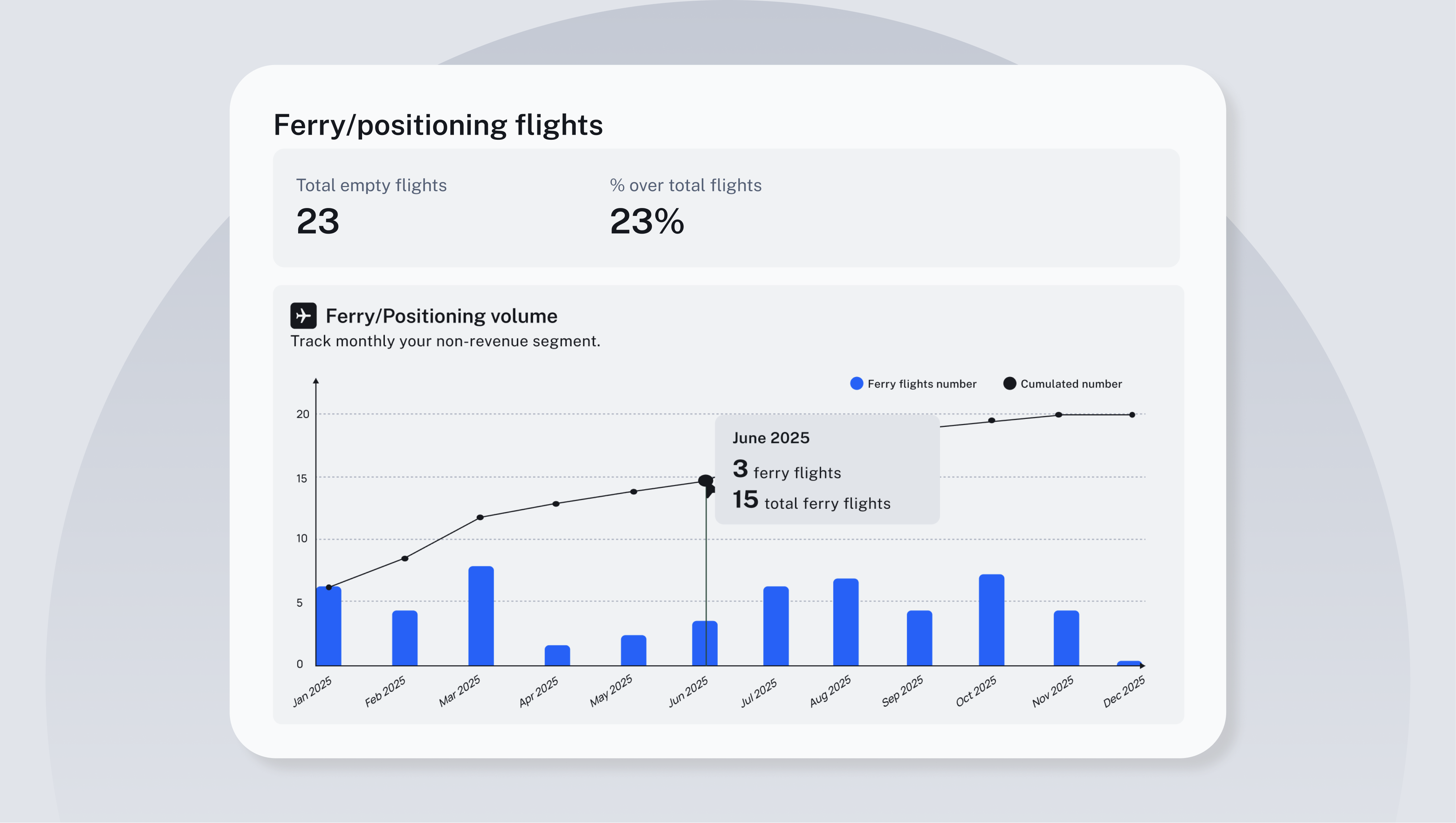 Ratio of non-revenue flights and seat occupancy. Tracks operational efficiency and carbon optimization.